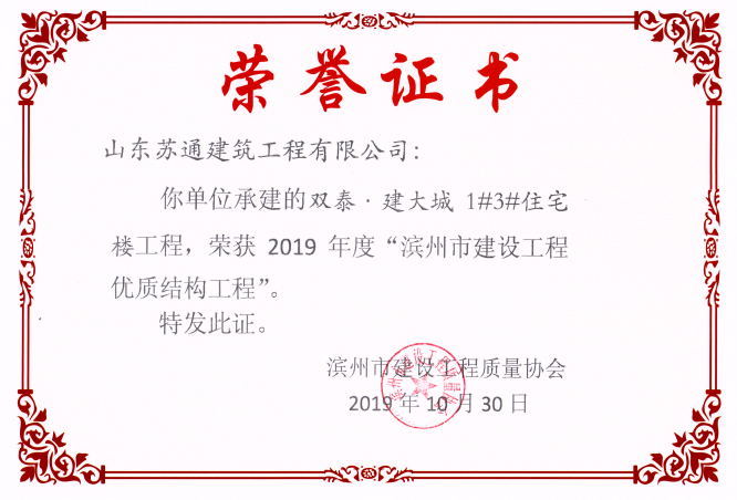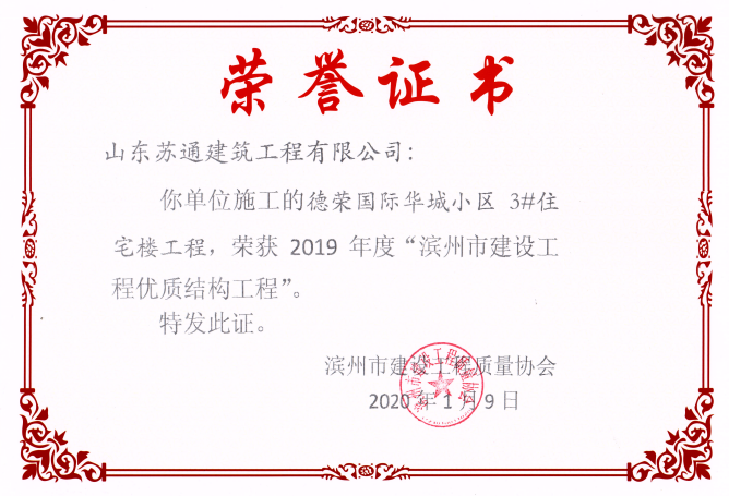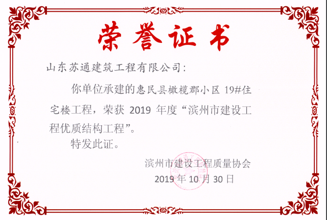 山東蘇通建筑工程有限公司,創(chuàng)建于2009年8月。目前擁有房屋建筑工程施工總承包壹級、市政公用工程施工總承包叁級、水利水電工程施工總承包叁級資質(zhì),同時還具有建筑裝修裝飾工程專業(yè)承包貳級、消防設施工程專業(yè)承包貳級、鋼結構工程專業(yè)承包叁級、建筑機電安裝工程專業(yè)承包叁級等專業(yè)承包資質(zhì)。 公司總部坐落于山東省濱州市濱城區(qū)黃河十二路877號,現(xiàn)有辦公面積約2000平方米,機構設黨支部工會辦公室、總經(jīng)理辦公室、綜合辦公室、工程管理部、經(jīng)營預算部、資產(chǎn)財務部、材料設備部、運行管理部、法律事務部等多個職能部門。公司管理體系已經(jīng)通過了GB/T 19001及GB/T 50430質(zhì)量管理體系、GB/T 24001環(huán)境管理體系(EMS)、GB/T 28001職業(yè)健康安全管理體系(OHSMS)等體系的認證。 公司承建完工了濱州市建大教師之家、建大清怡苑、香格里拉水岸綠城住宅小區(qū)、雙泰建大城、曲阜崇德公館住宅小區(qū)、北海新區(qū)御景藍灣住宅小區(qū)、沾化德榮國際華城住宅小區(qū)、惠民橄欖郡住宅小區(qū)等工程項目,目前在建工程項目有:濱州市頤高國際電子商務產(chǎn)業(yè)園住宅小區(qū)項目、濱州市東盛國際項目、高新區(qū)建大中央華府住宅小區(qū)項目、濱州市融匯新里程住宅小區(qū)項目、濱州市建大秦皇壹號住宅小區(qū)項目、濱州市森林花...
